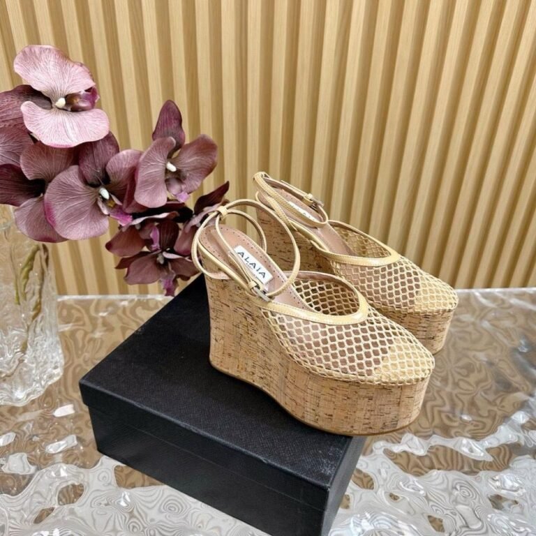 صندل كعب سابو عالي الايا ويدج للنساء لون بيج عصري