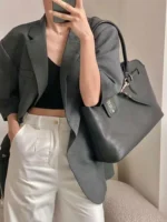 حقيبة كتف واسعة ميوميو Joie nappa جلد فخم لون أسود