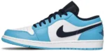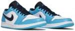 حذاء اير جوردان 1 لو جي اس “يو إن سي” هو نسخة من سلسلة اير جوردان 1 المحبوبة بتصميمها الأنيق والرياضي. يتميز هذا الحذاء بتفاصيل مستوحاة من فريق كرة السلة جامعة نورث كارولاينا، والتي تشتهر بألوانها الأزرق والأبيض.