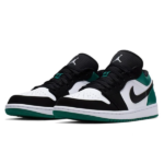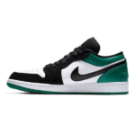 يتميز الحذاء بتصميم مستوحى من الإصدارات الأصلية لسلسلة اير جوردان1، مع تفاصيل منخفضة الارتفاع تضيف لمسة عصرية ومريحة. يتميز اللون الميستيك جرين بتفاصيل جذابة، مما يضفي لمسة من الإثارة على التصميم العام.
