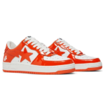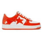 تصميم حذاء بابي سيتا أورانج BAPE STA يتميز أيضًا بنعل متين ومريح، مما يجعله مناسبًا للارتداء اليومي والأنشطة الرياضية. يتميز الحذاء بتفاصيل دقيقة مثل الحلقات المعدنية واللسان المبطن، مما يزيد من جاذبيته ويمنحه لمسة فريدة.