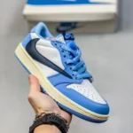 الفخامة والأداء العالي مع سنيكرز Air Jordan 1 x Travis Scott باللون لايت بلو – مزيج مثالي من الأسلوب الرياضي العصري والشخصية الفريدة.