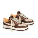 يتميز هذا الحذاء بتصميمه الكلاسيكي المستوحى من حذاء اير فورس 1 الشهير من نايكي، مع لمسات فاخرة من جلد مونوغرام المميز للعلامة التجارية لويس فيتون.