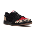 • يتميز حذاء اسود رجالي سولي فلاي مع اير جوردن 1 لو كارنيفور بتصميمه الفريد والأنيق الذي يجمع بين عناصر من حذاء سولي فلاي وحذاء اير جوردن 1.