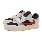 • تصميم مميز وعصري: الألوان الأحمر، الأسود والأبيض تتناغم بشكل مثالي لتضفي على الحذاء مظهراً جريئاً وأنيقاً يناسب مختلف الإطلالات.