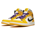 حذاء إير جوردان 1 ميد إصدار بألوان فريق ليكرز – لمسة رياضية تجمع بين الأسطورة والأناقة